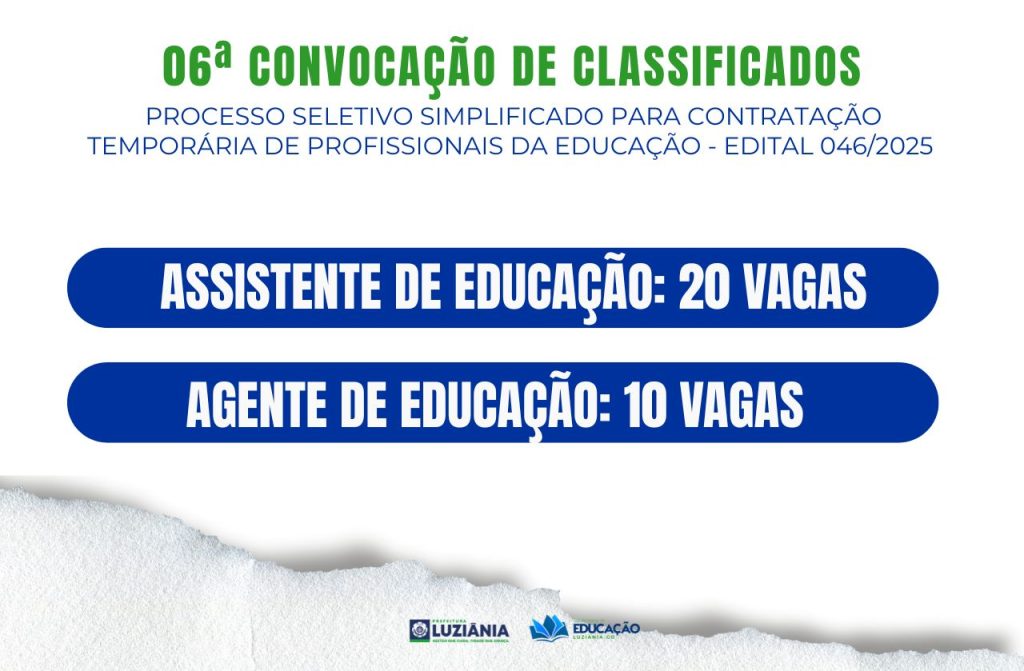 A Secretária Municipal de Educação de Luziânia, Estado de Goiás, CONVOCA os CLASSIFICADOS das posições 124ª a 134ª dos aprovados,