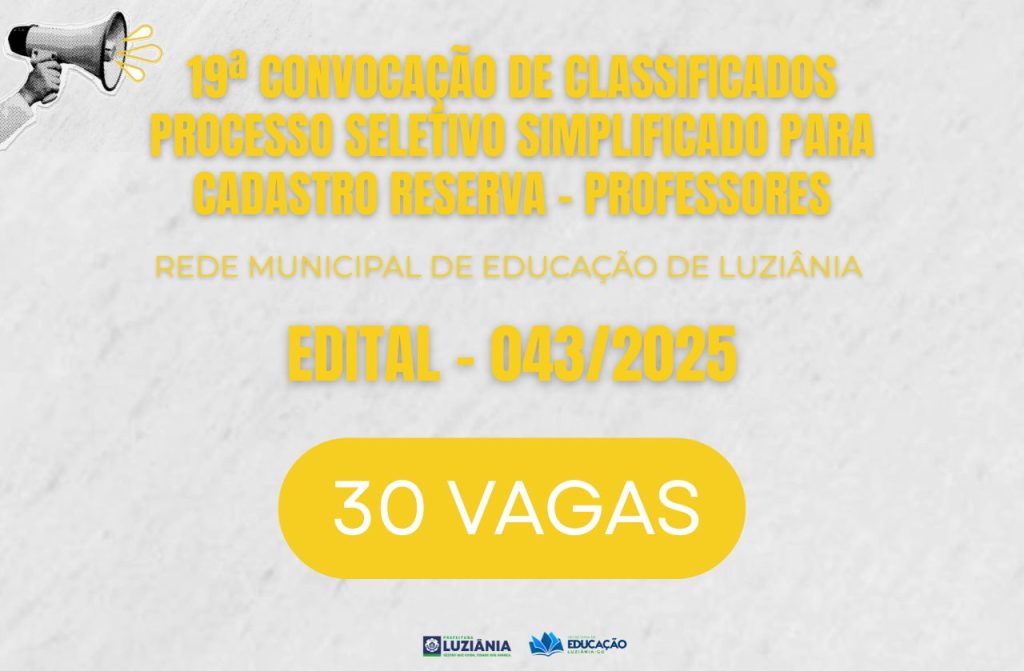 19ª CONVOCAÇÃO DE CLASSIFICADOS DO PROCESSO SELETIVO SIMPLIFICADO PARA CADASTRO RESERVA – PROFESSORES – EDITAL 043/2025