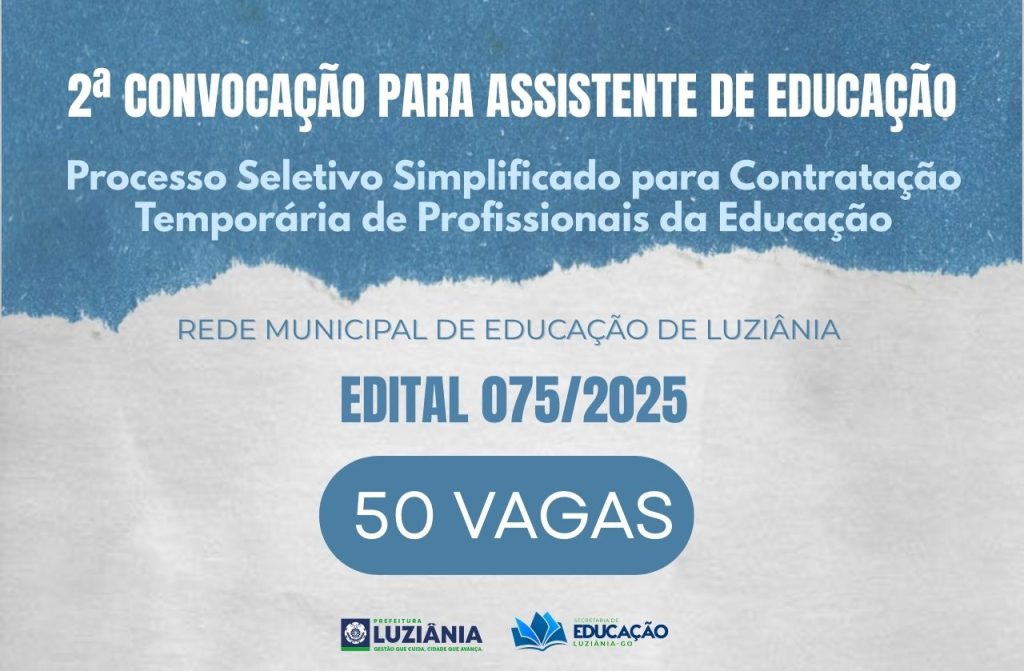 2° CONVOCAÇÃO PARA ASSISTENTE DE EDUCAÇÃO – EDITAL 075/2025
