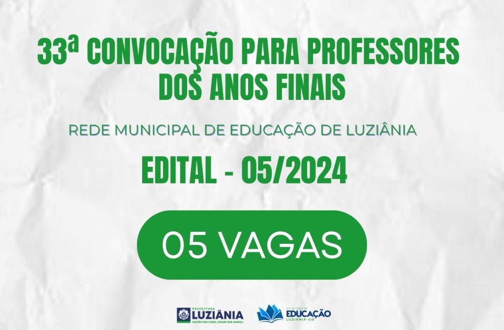 33° CONVOCAÇÃO PARA PROFESSORES ANOS FINAIS – EDITAL 05/2024